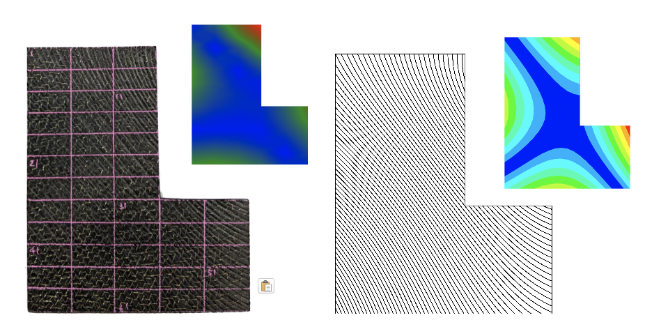 本研究室では,例えば材料異方性を考慮した,様々な解析ソフトおよびモデルを開発し,解析および最適化計算を行っています.また,自然界の材料に着想して,局所的な異方性や,曲線状の強化繊維を持つ複合材料を提案し,その解析手法や最適化手法を開発しています.曲線状の繊維は,従来の直線状の強化繊維を持つ材料よりも,振動数や面内強度の面で優れた機械的性質を示すことが明らかになってきており,機械構造物の高性能化に貢献できます.